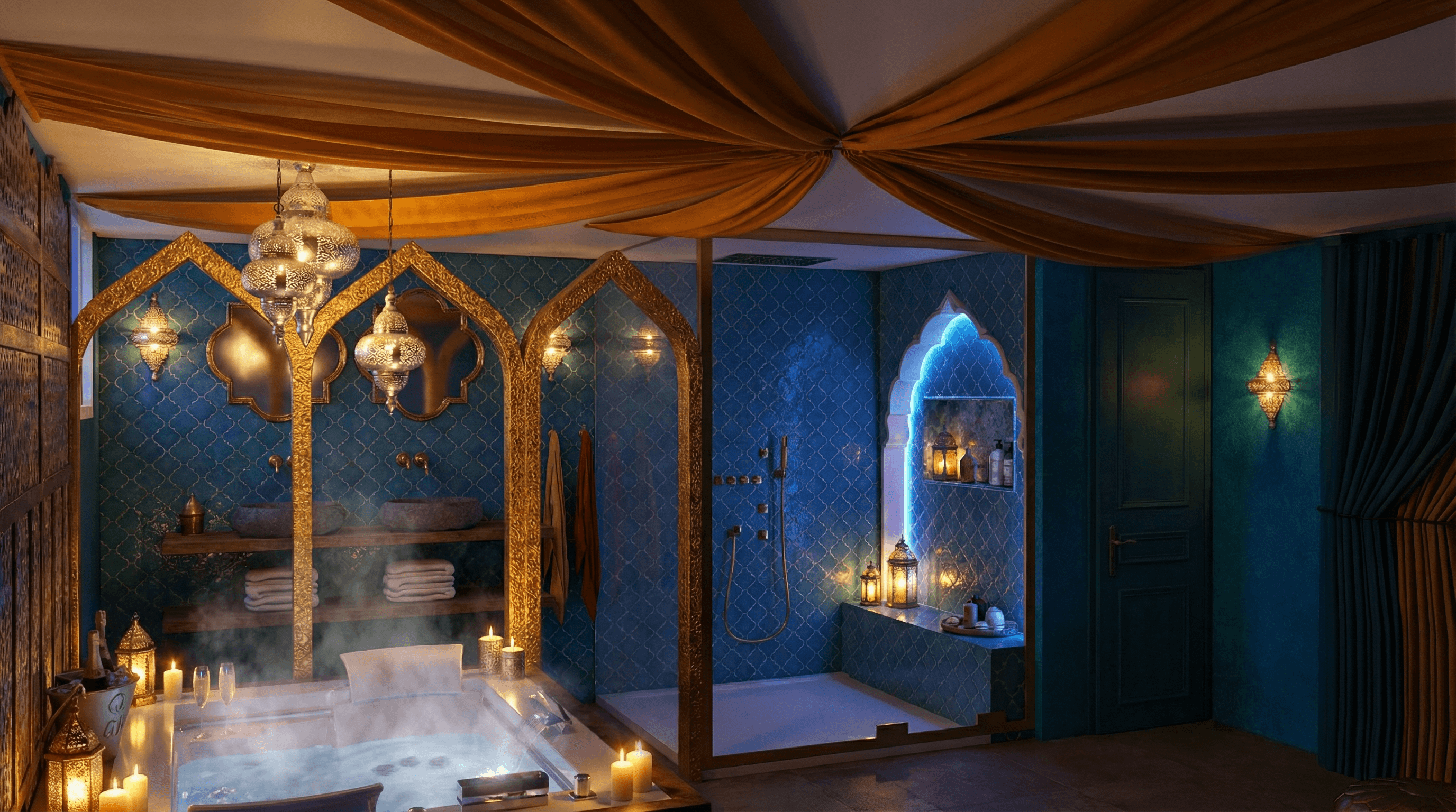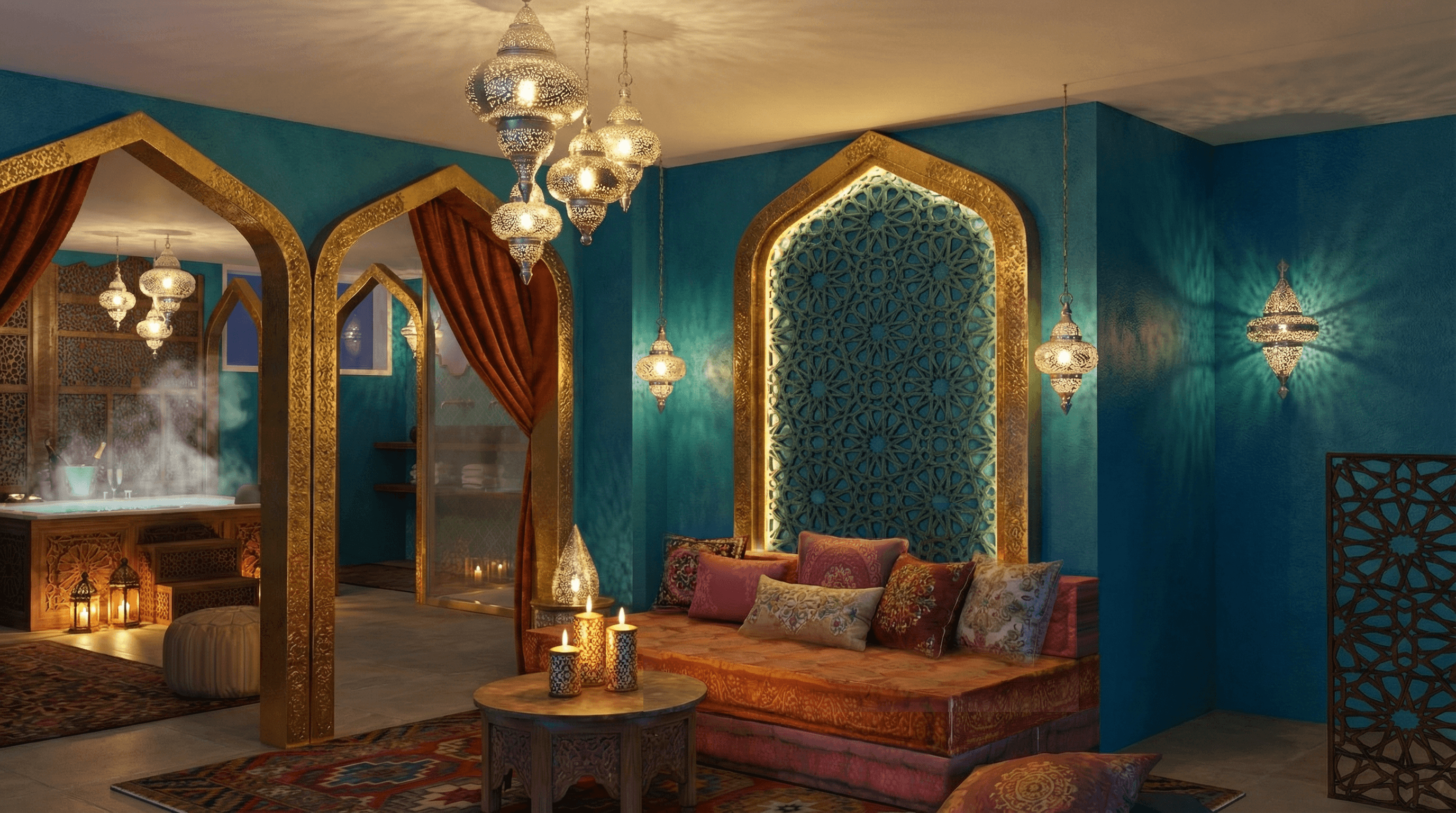 Le projet donne naissance à un espace spa spectaculaire, à la fois élégant et profondément immersif. Le contraste entre la chaleur du bois, la richesse des détails orientaux et la fraîcheur du hammam crée une expérience unique.