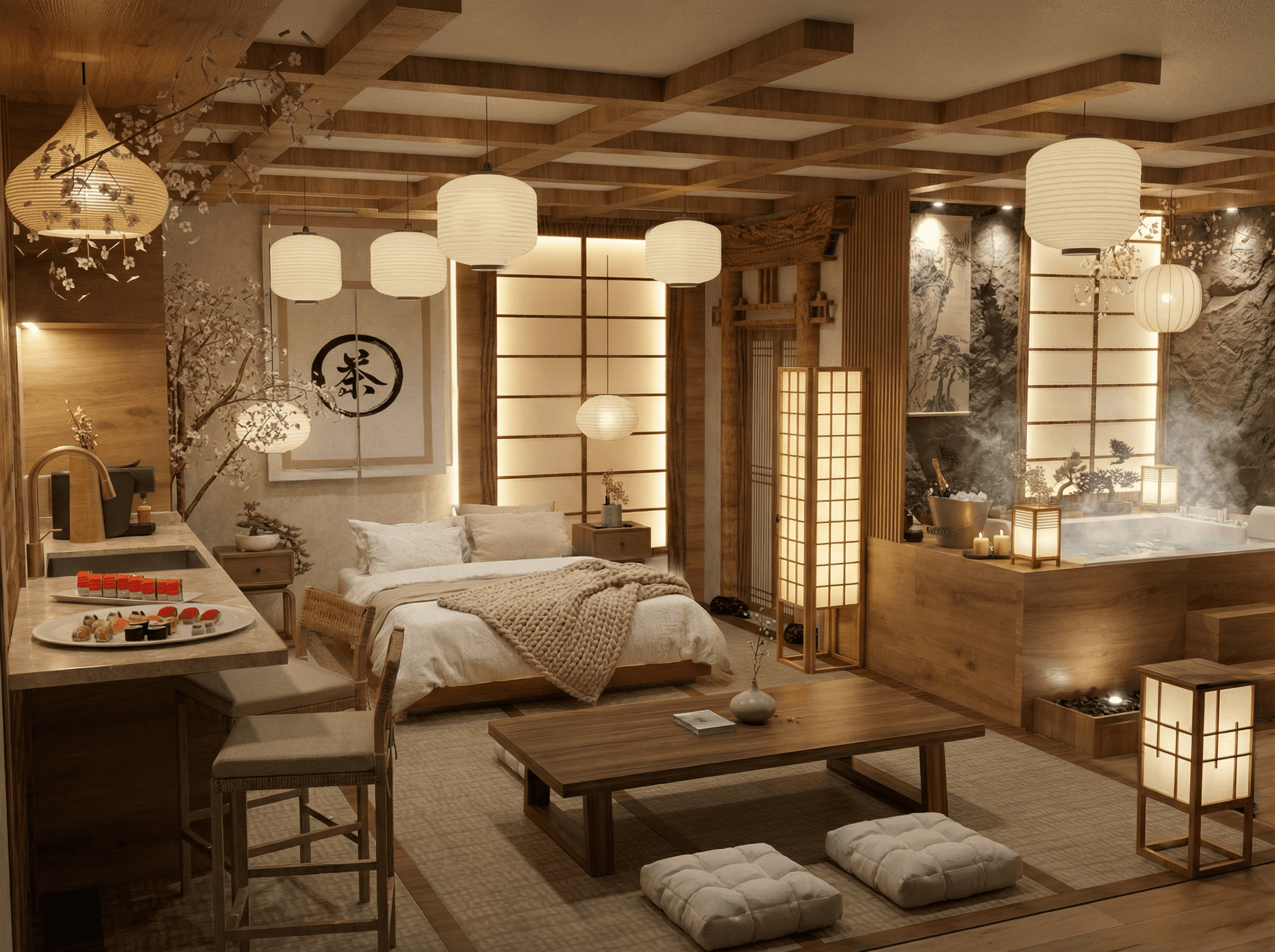Une transformation complète d’un espace en une Japan Room immersive, inspirée de l’esthétique japonaise entre minimalisme, nature et sérénité. Le lieu a été pensé comme une véritable parenthèse apaisante, où chaque élément invite au calme et à la déconnexion.