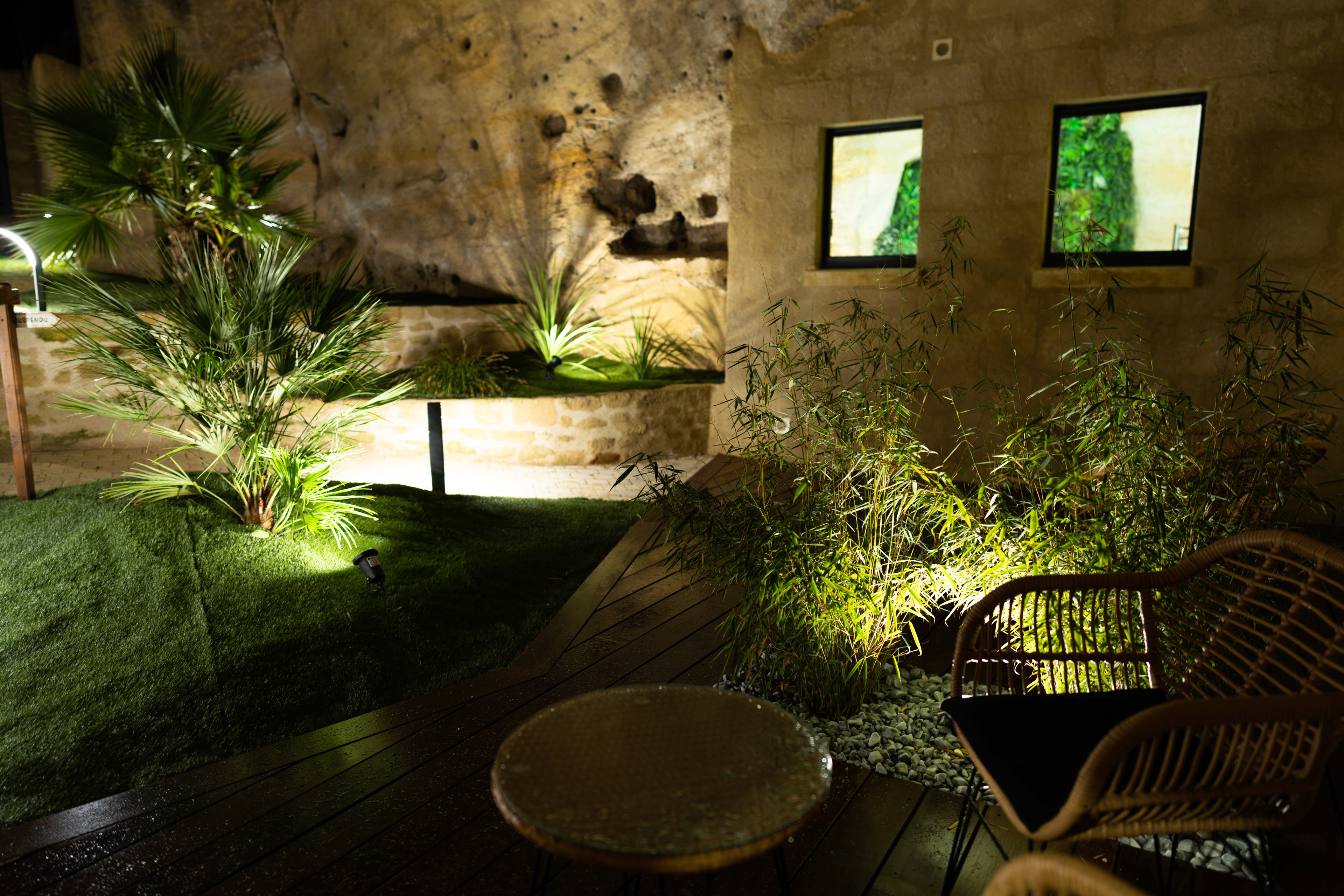 Le projet révèle toute la puissance du troglodyte : un espace atypique, chaleureux et profondément différenciant. La roche devient un élément architectural fort, mise en valeur par des jeux de lumière subtils et des aménagements contemporains.